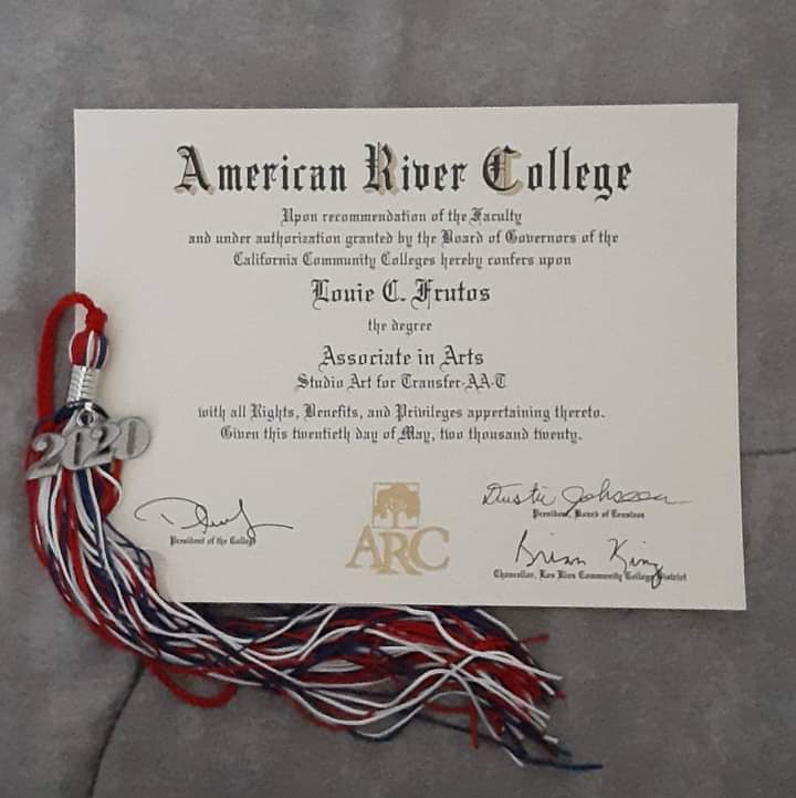 My name is Louie Charles Frutos Jr. I am a local from Sacramento California. As you may see, I like to draw and sometimes paint pictures as well as doing other things involving art. I have some experience using my artwork to do a job. In 2019 through 2020, I had worked as an intern with The American River College Design Hub program. My job there was to work on the laser engraving machine. I engraved keychains, nametags, intern desk plaques plaques. I was even tasked with engraving my own drawings on to plaques of wood. I trained new student interns on how to work the machine.