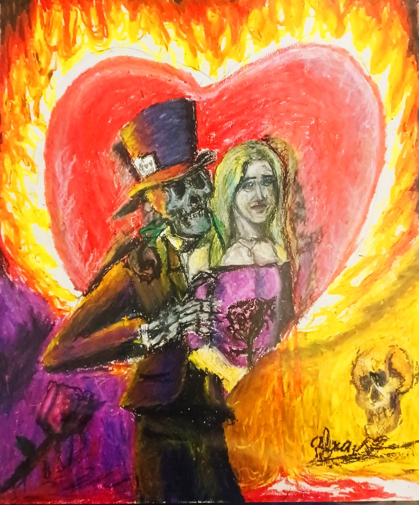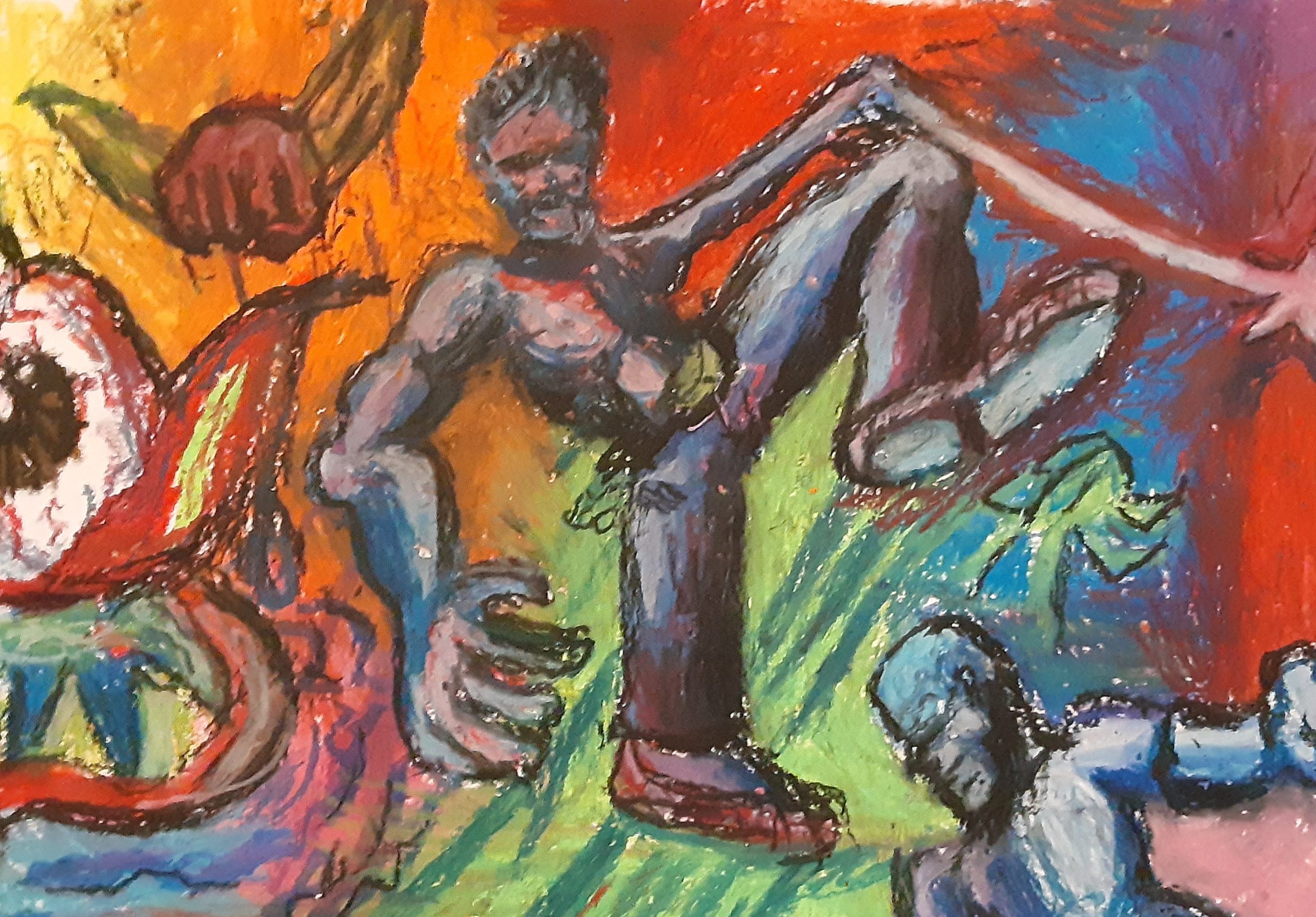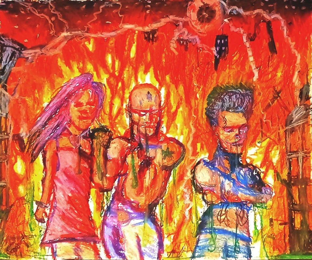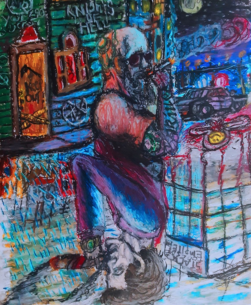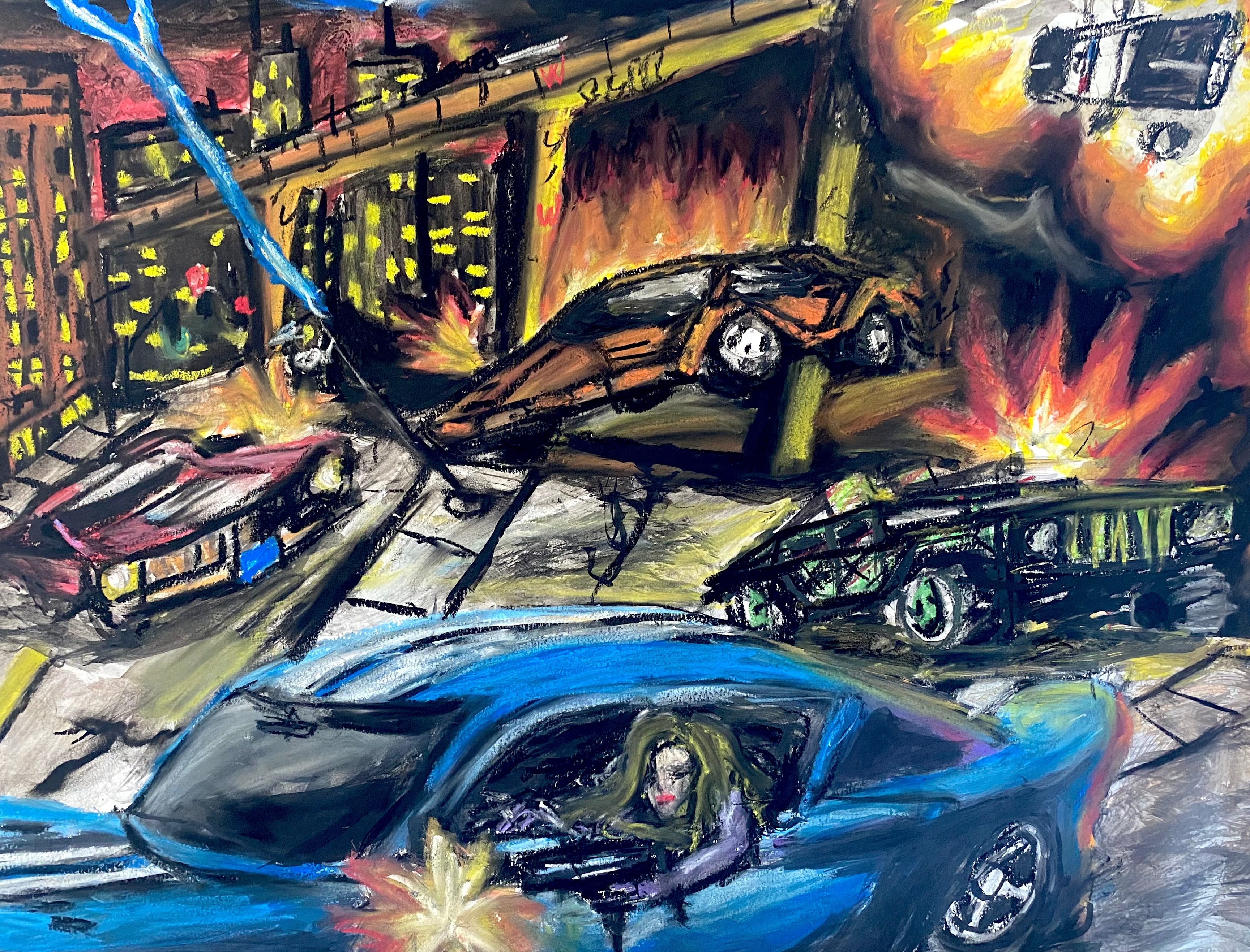 Hell Rollers: 14″ x 17″, oil pastel, 2023