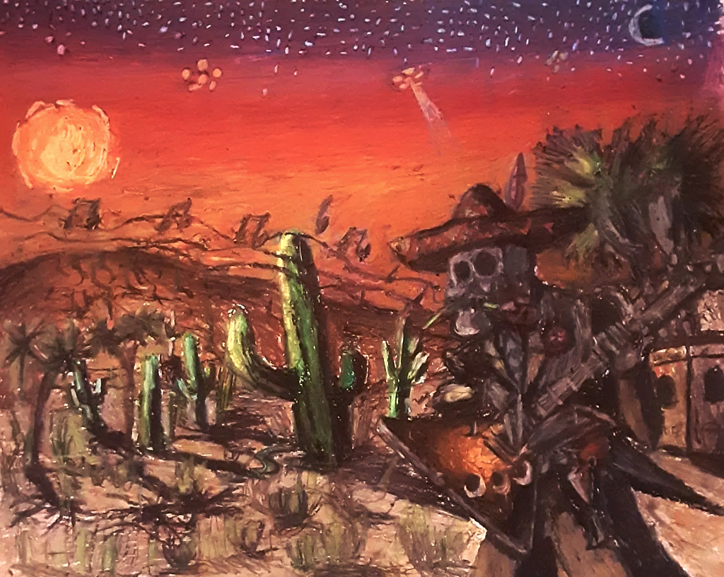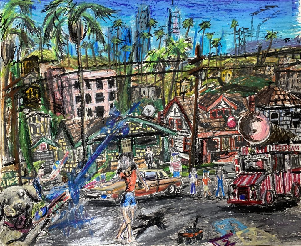 Future Overground: 8″ x 11″, oil pastel, 2023