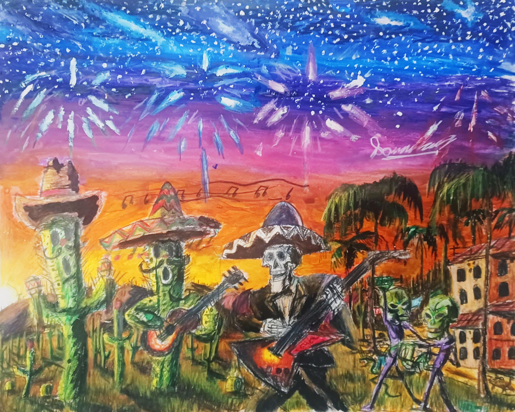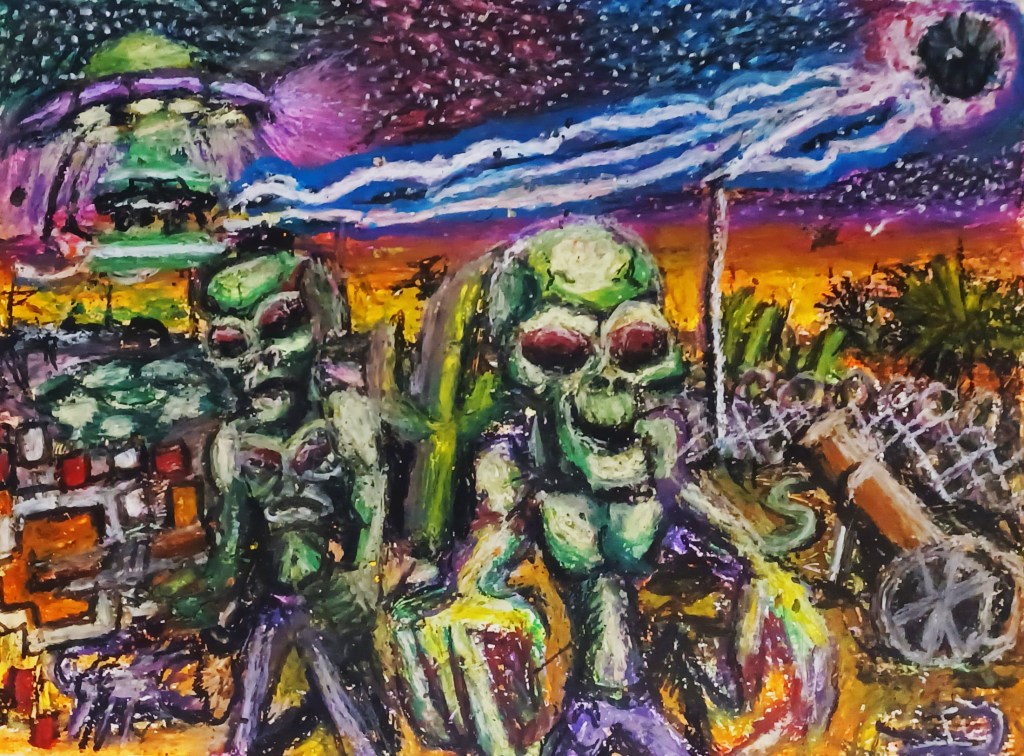 Mutant Holiday: 14″ x 17″, Oil Pastel, 2023