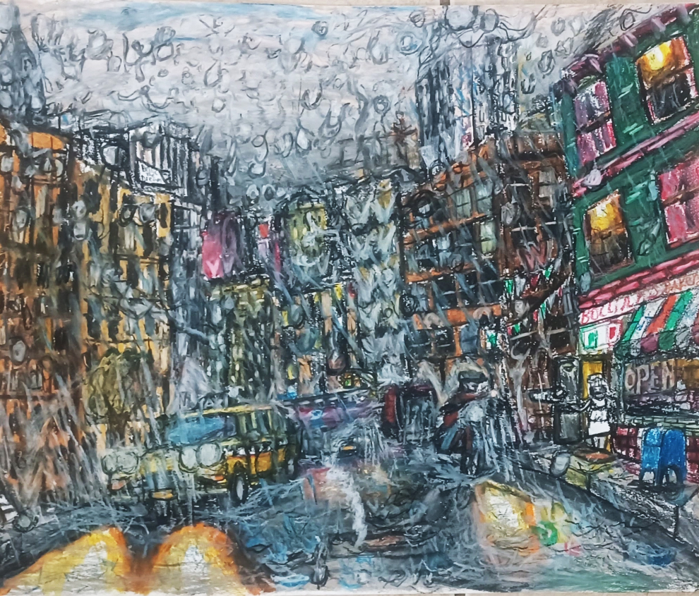Hard times strong: 14″ x 17″, oil pastel, 2023