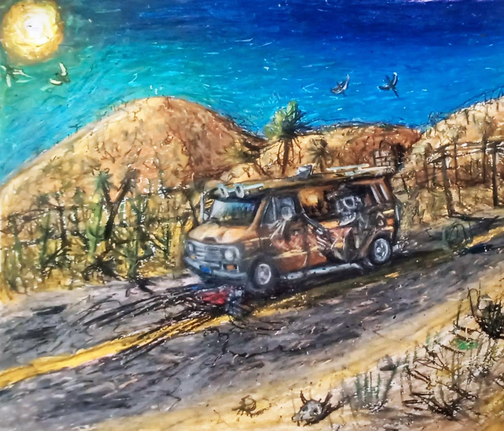 Offroad Rage: 14″ x 28″, mixed medium, 2024